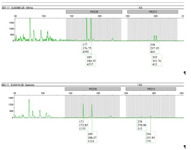 Ein Beispiel für eine vollständige Übereinstimmung und damit für einen Hinweis auf Vollgeschwisterschaft findet sich z.B. im Genort PEZ 01: